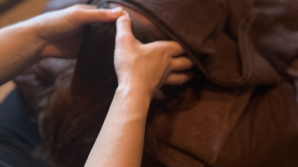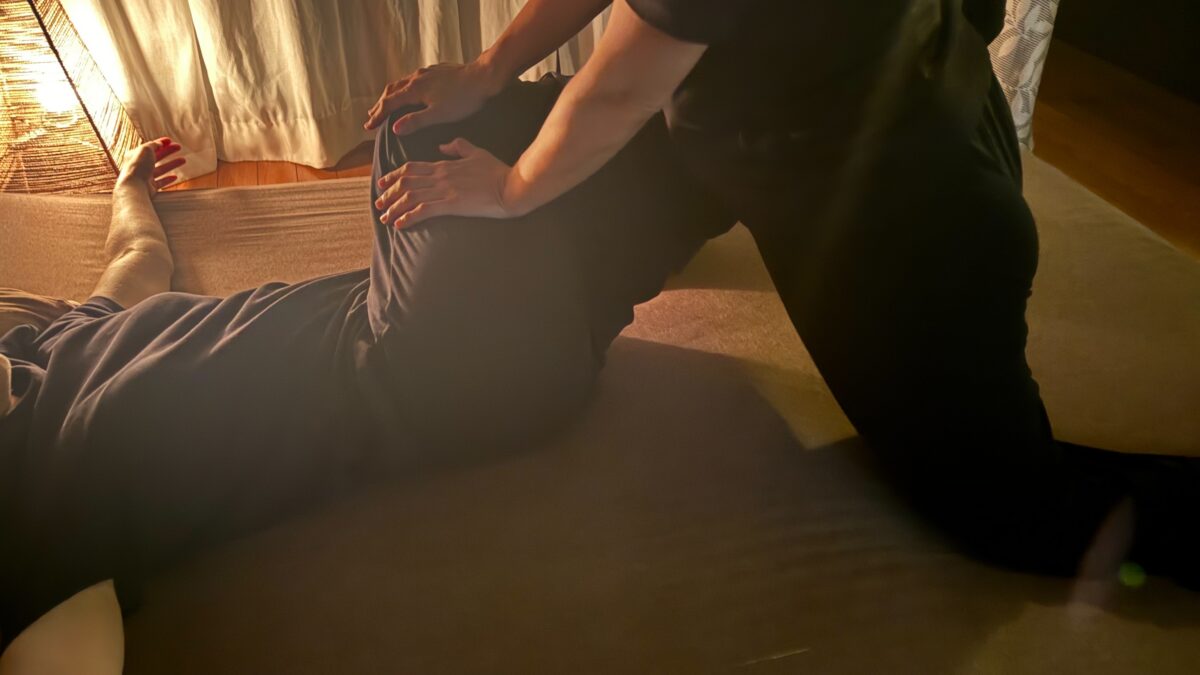 ※タオルの上からセラピストの手や肘の圧を使って行っていく施術です。